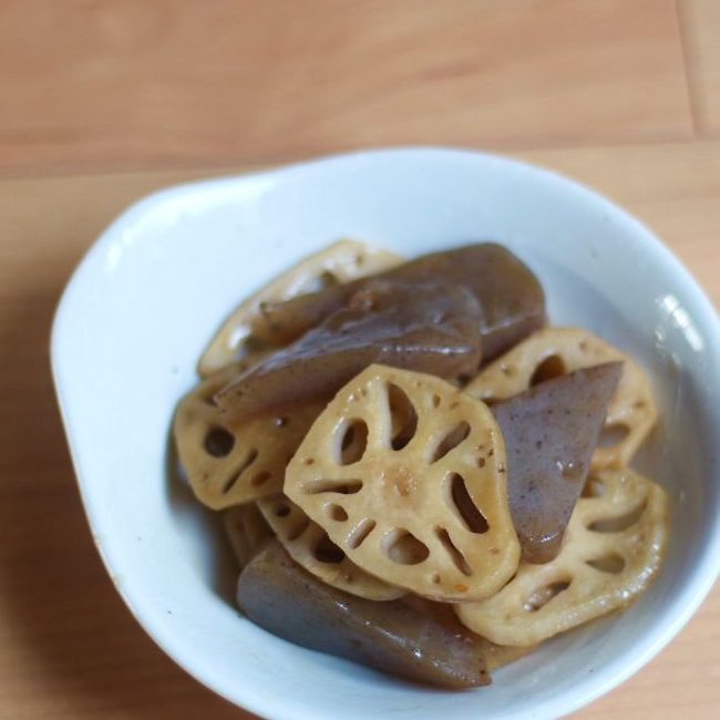 こんにゃくと蓮根のピリ辛煮